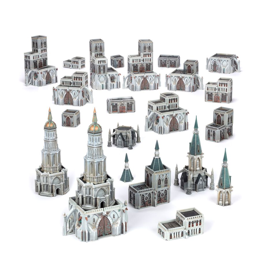 Ce kit plastique permet d’assembler un set de bâtiments à l’échelle epic, conçus pour être utilisés dans les parties de Legions Imperialis et d’Adeptus Titanicus. Ce set modulaire peut être agencé et empilé selon diverses configurations: des dizaines de petits bâtiments, ou quelques tours suffisamment hautes pour fournir un couvert à un Titan Warlord.